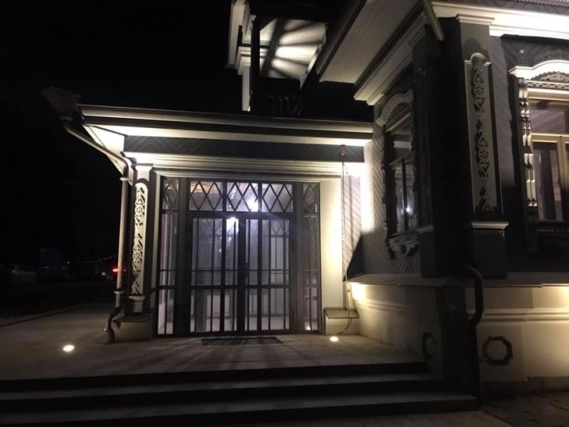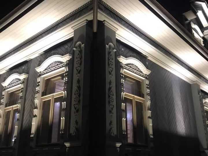 Южный корпус — деревянное двухэтажное здание с высокими башнями-верандами. По углам дома примыкают высокие, квадратные в плане башни-веранды с оригинальными надстройками: их грани прорезаны полуциркульными окнами, они завершены сильно вынесенными карнизами на кронштейнах и увенчаны усеченными шатрами с нарядной раскраской кровли «в шашечку». Дополнительный эффект обеспечивает разнообразная тесовая обшивка: вертикальная, диагональная и «в елочку».