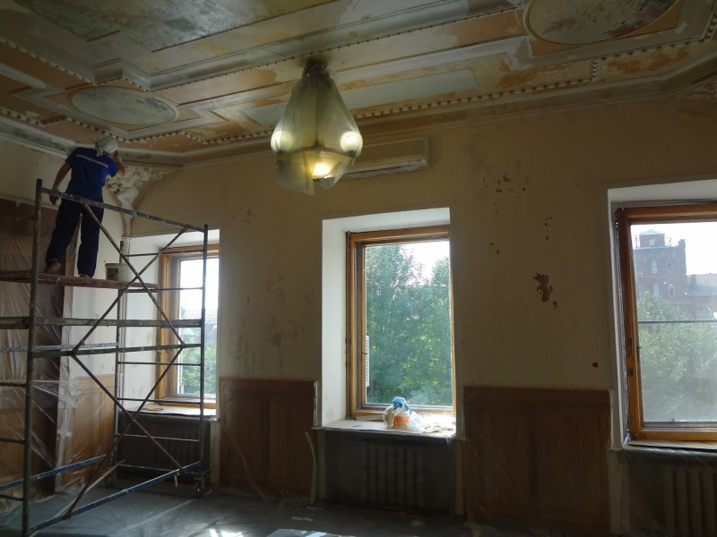 На основе комплексных научных исследований составлен проект реставрации и проведены работы в интерьере объекта культурного наследия. Так, по сохранившемуся наличнику входа в приемную восстановлены утраченные обрамления дверей. Проведена полноценная реставрация фасадов, декоративных элементов водосточных труб и кованых решеток. В 2018 году специалисты заменили поврежденные стропильные конструкции, обеспечили реставрацию кровли, изготовление и установку водосточных элементов по старым образцам.