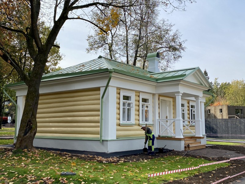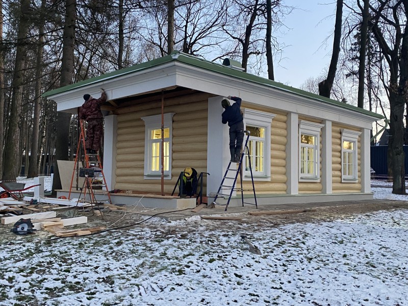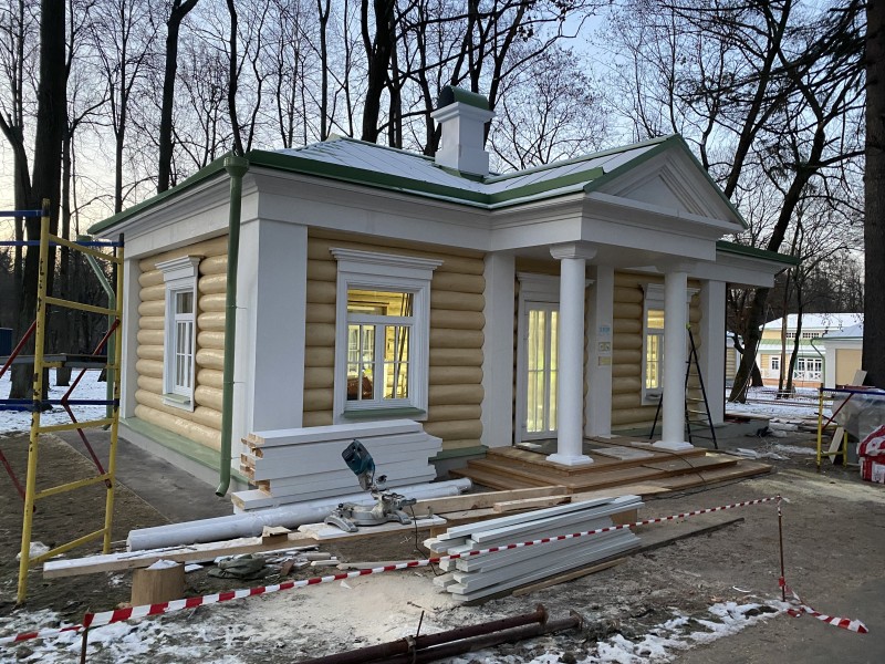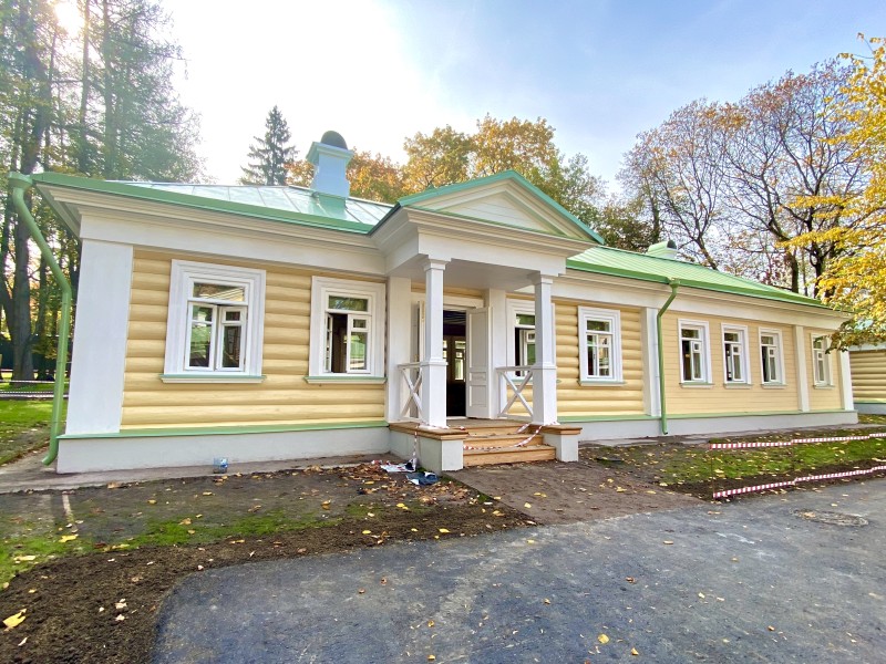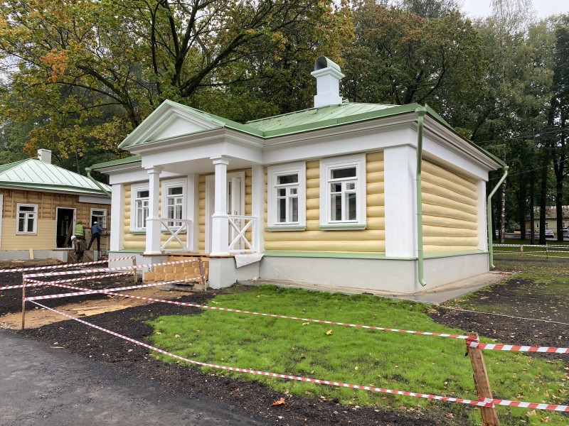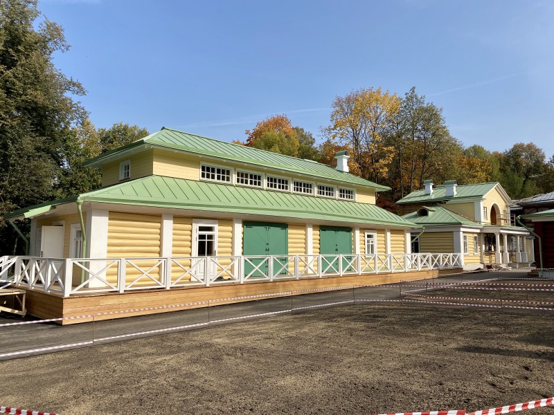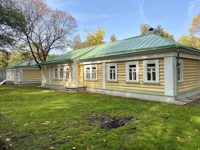 Северная терраса, устланная каменными плитами, своими шестью колоннами подпирала верхний открытый балкон. В нижнем этаже дома была большая зала-библиотека, две гостиные, буфет, передняя, девичья и жилые комнаты. Наверху два кабинета, жилые комнаты и кладовая.